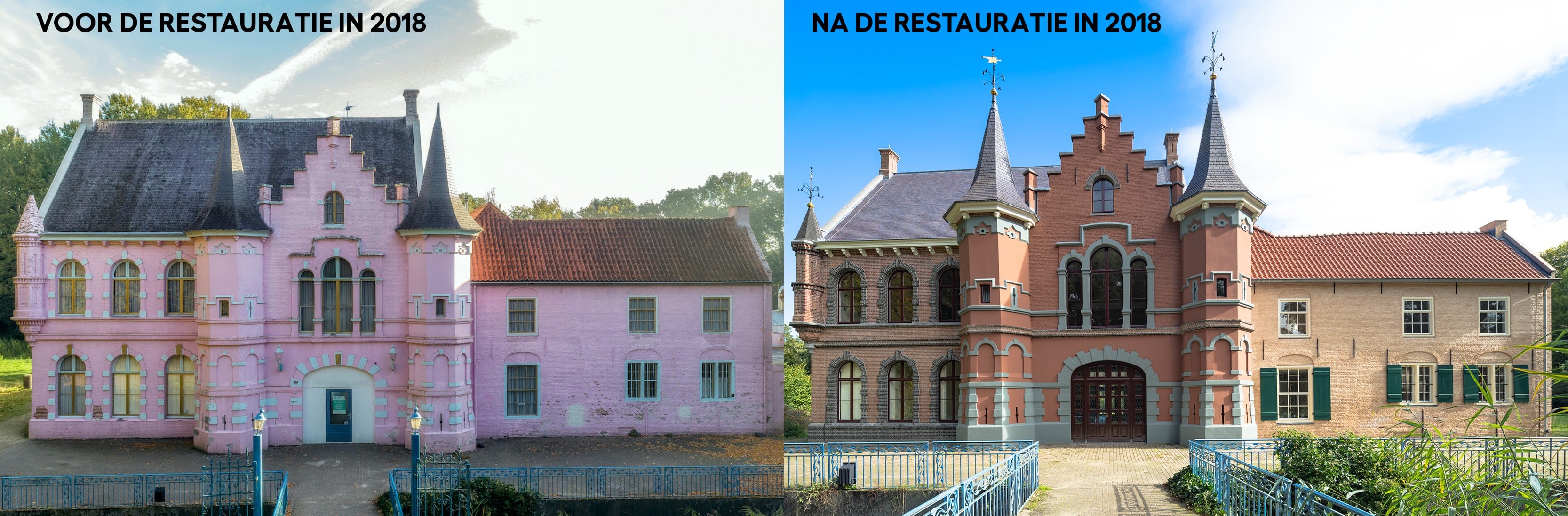Sinds 2018 is Bureau Delfgou betrokken bij dit project. Wij hebben de gevelrestauratie gerealiseerd en de karakteristieke roze kleur vervangen door de historische uitstraling die het kasteel recht doet. Samen met onze partners hebben we het plan voor de herbestemming ontwikkeld. Het kasteel heeft nu een eigentijdse functie als bijeenkomstlocatie met vergaderruimtes en een restaurant. Bovendien is er op het landgoed een nieuw hotelgebouw toegevoegd, waarmee Kasteel Steenenburg opnieuw een waardevolle plek voor de regio is geworden.